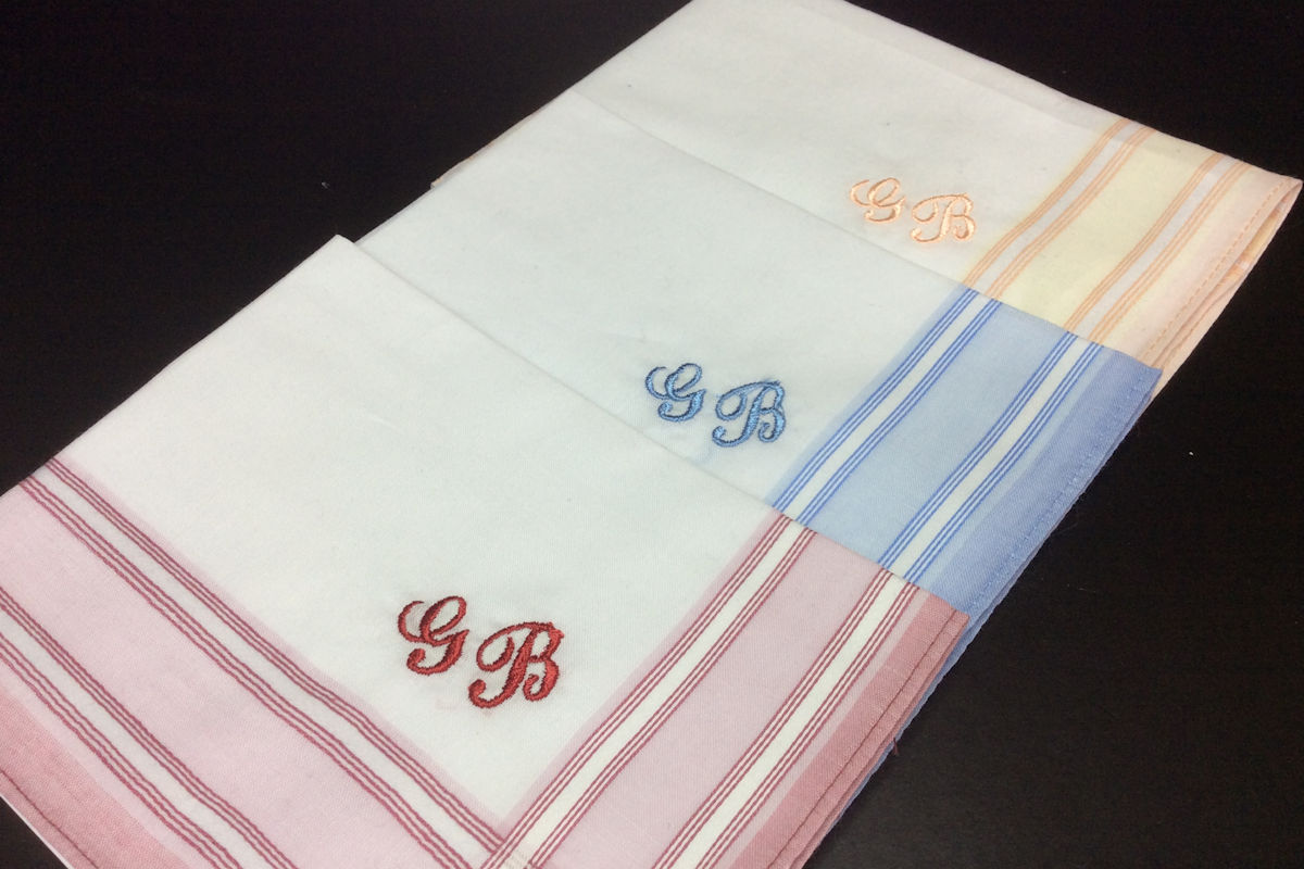 3 Stück Damentaschentücher "Mia" weiß mit gestreiften Rand und Ihren Initialen bestickt